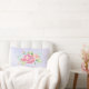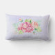 Ein Kissen aus Lendenwirbel mit einer schönen und eleganten Aquarellfarbe kreierte Blumenstrauß. Rosa Blume, umgeben von hellgrünem Grün. Lila Aquarell