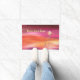 Fügen Sie Ihrer Wohngestaltung eine elegante und individuelle Türmatte hinzu. Personalisieren Sie sich mit einem Namen, einer Initial-, einer Nachricht, einem Zitat oder allem, was Sie wünschen. Rosa Flamingo-Wading in einem surrealen pastellfarbenen Wasserloch.