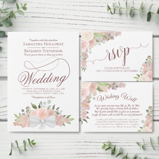 Pink Watercolor Floral Rustic Spring Wedding SuiteDesignt von Cat Ritchie