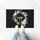 Hübsche Monogramm-Doormat, mit einem schönen weißen Skriptnamen mit einem Kompliment Gold-Initial, der durch eine zarte Aquarellblume Rose Garland auf einem schwarzen Hintergrund gerahmt ist. Personalisieren Sie sich, um ein besonderes Geschenk zu erhalten! Entwickelt von Thisisnotme©
