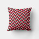 Klassisches und elegantes Kissen mit Deko in Rot, Schwarz und Weiß, im Stil eines Herringbone-Motivs.