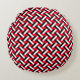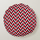 Klassisches und elegantes Rundkissen mit roten, schwarz-weißen Deko-Mustern im Stil eines Herringbone-Motivs.