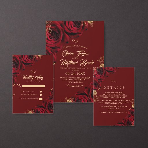 Burgundy Red and Gold Roses WeddingDesignt von Uliana K.
