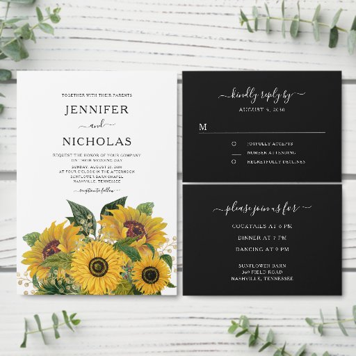 Elegant Black Sunflower Wedding Invitation SuiteDesignt von Maggie B Design