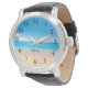 Elegante schwarze Zahlen Aqua Beach Szene personal Armbanduhr