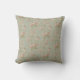 Dieses Kissen kennzeichnet ein Vintages rosa Rosenmuster auf einem grünen Hintergrund.