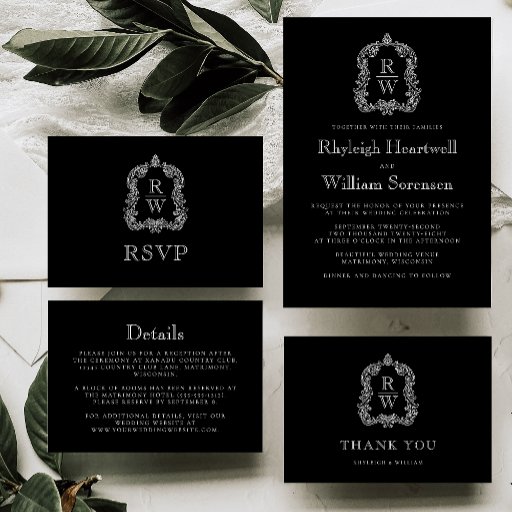 Classic Monogram Crest Black White Wedding SuiteDesignt von Akhates Designs