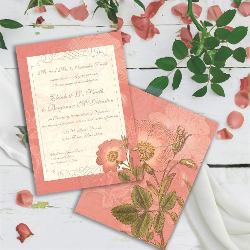 Schöne Vintage Rose Garten Hochzeit Einladungen. Elegante pfirsichrosa Farbe.