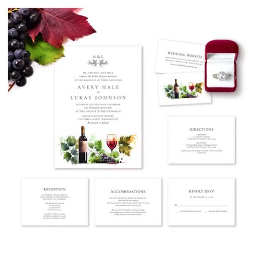 Beginnen Sie Ihren Tag mit unserer eleganten Watercolor Monogram Vineyard Wedding All-in-One Einladung, geschmückt mit den Initialen des Paares und feinen Blätter Wein für eine personalisierte Touch. Diese leicht anpassbare Einladung mit schicken Kalligrafien und rustikalem Charme beinhaltet eine RSVP-Karte, die Eleganz und Komfort für Ihren besonderen Tag nahtlos verbindet.