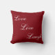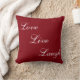Elegante weiße Kalligraphie auf bordeauxrotem Kissen.