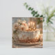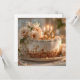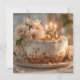 Dieses hübsche und elegante Bild zeigt einen mattierten, weißen Fest-Kuchen auf einem goldenen Teller, der mit einem großen, zarten Bouquet mit weißen und pfirsichfarbenen Blume geschmückt ist. Der Kuchen ist das Herzstück für eine Meilenstein-Feier mit einem goldenen "50" Kuchentopf und drei beleuchteten Kerzen. Das Ambiente ist gemütlich und einladend, mit sanftem, natürlichem Licht und einer sanften Krümelstauflage, die eine intime und fröhliche Atmosphäre schafft. Dieses Bild ist perfekt für jeden, der ein Gefühl von Luxus, Eleganz und einen besonderen, unvergesslichen Anlass vermitteln möchte.
