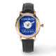 Eleganter Abschluss Monogram Blue Marble Gold Foil Armbanduhr