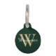 Minimalistisches, elegantes, einfaches Gold, weiß und dunkelkieferngrün, benutzerdefiniertes Monogramm Initial-, Brief- und Skriptname, Familienname personalisierte Hundekatze Pet ID-Tag. Sie können die Vorderseite anpassen: mit dem Anfangsbuchstaben und -namen und dem Rücken: mit Namen, Telefon, Adresse, Pet Insurance ID Nummer oder allen wichtigen Informationen