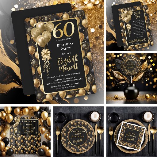 Elegant Black Gold Balloons 60th Birthday Party Designt von Tammy Yargates