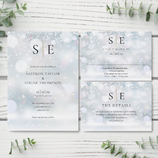 Simple Winter Snowflakes Monogram Wedding SuiteDesignt von Thisisnotme Designs