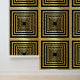 Extravagante, elegante und glamouröse Tapete aus Schwarz und Gold mit ansehnlichen glänzenden Goldquadraten, die zu einer faszinierenden 3D-Illusion verbunden sind. Die Hintergrundfarbe kann individuell nach Ihren Wünschen geändert werden. Wallpaper können auch als Rahmen verwendet werden.