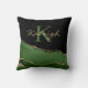 Elegantes Dekorationskissen aus schwarzem und grünem Marmor mit glänzenden goldenen Streifen. Personalisiert mit Ihrem Monogramm/Name und Initialname.