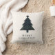 Modernes Weihnachtswerfer-Kissen mit zeitlosem Design mit einem Weihnachtsbaum mit gedämpftem Marineblau und grünem kariertem Muster und dem Gruß "Frohe Weihnachten".