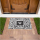 Eleganter moderner Stil schwarz-weiß Monogramm Doormat. Ein Design mit griechischem Schlüssel schwarz und weiß, besonders schön mit der schwarzen Blume. Sehr gepflegt mit schwarzem Rand in der Mitte der Tür. Ursprünglich W und amerikanischer Nachname Wilson. Hier kannst du das Bild ändern und deinen eigenen Namen schreiben.