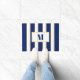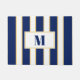 Herzlich willkommen in dieser eleganten und modernen Türmatte. Ein einfaches Design aus marineblau-blauen, weißen und goldenen Streifen mit goldgeriemtem Monogramm. Personalisieren Sie Ihre Monografie.