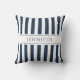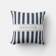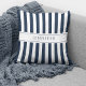 Eleganter Navy Blue & White Stripes Muster Name Kissen
