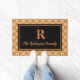 Elegantes, individuelles Monogramm Doormat in klassischem Buffalo kariert Schwarz und Bräune Farbmuster . Sie können mit dem Nachnamen Ihrer Familie im Skript und einem Serifenstil-Monogramm-Initial personalisieren.