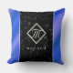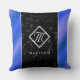 Elegantes Black Marble & Royal Blue Foil Monogramm Kissen