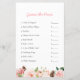 "Fordern Sie die Gäste mit diesem zauberhaften Pink Floral Guess die Preiskarte an! Mit einem zarten Blumendesign ist es eine angenehme Ergänzung zu jeder Babydusche. Ideal, um das Eis zu brechen und eine Touch freundlicher Konkurrenz hinzuzufügen!