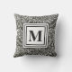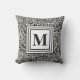 Elegantes botanisches Muster Schwarz-Weiß-Monogram Kissen