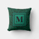 Elegantes Emerald Green Monogram Foliage Muster Kissen