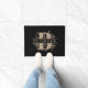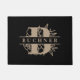 Elegante mit Monogramm Türmatte in klassischer, haltbarer Bräune und schwarzem Weiß, mit dem ersten Monogramm Ihres Single mit Ihrem Familiennamen überlagert, dekoriert mit einer Blumenbild und botanischen Kontur.