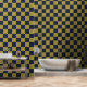 Elegantes Gold- und Navy-Blue-Checkered-Muster Tapete