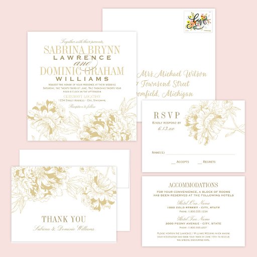 Elegant Champagne Gold Floral Peony WeddingDesignt von Kat Fusinski