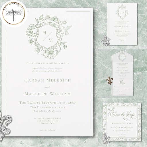 Elegant Green Chinoiserie Bird & Crest WeddingDesignt von Kathe Santillo