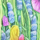 Schöne Hand gezeichnet von Blume in Multicolor, lila, grün, blau und gelb.