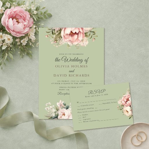 Elegant Sage Green Peony Wedding CollectionDesignt von Juczi Kata