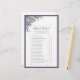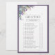 Modernes, elegantes Brautparty-Spiel "Guess Who" mit einem Bouquet aus Lavendel-Blume, Gold und botanischem Grün, umgeben von einem reichen Lavendel. Personalisieren Sie Ihre Fragen in weichem Offschwarz, betont durch schöne moderne handgeschriebene Kalligraphie. Kontaktieren Sie Designer für passende Produkte. Copyright Anastasia Surridge für Elegant Invites, alle Rechte vorbehalten.