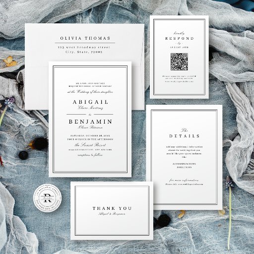 Elegantes minimalistisches Design in Schwarz und Weiß, einfach und elegant. Hervorragend für moderne klassische Hochzeit, Vintage Hochzeit und formelle Hochzeit. Alle passenden Teile in der Sammlung anzeigen