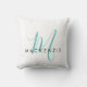 Elegantes, modernes Aquamarines Script Monogram Kissen