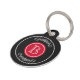 Elegantes Monogramm-Design in schwarzen und roten Kreisen mit Blumendekoration
