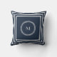 Elegantes Navy Blue Monogramm mit weißem Rahmen Kissen