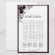 Modernes, elegantes Brautparty-Spiel "Word Search" mit einem Blumenstrauß von sanften, wasserfarbenen Rose in Pflaumentönen lila, mit üppig grünen eukalyptus botanischen Blätter und umgeben von Pflaume lila. Personalisieren Sie Ihren Brautparty-Namen in schwarz, betont durch die schöne moderne handgeschriebene Kalligraphie. Teil einer koordinierten Suite. Suite hier ansehen: https://www.zazzle.com/collections/plum_purple_watercolor_floral_bridal_shower-119250449992466290 Kontakt-Designer für passende Produkte. Copyright Anastasia Surridge für Elegant Invites, alle Rechte vorbehalten.