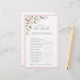 Modernes, elegantes Brautparty-Spiel "Wer die Braut am besten kennt" mit Blumenstrauß in sanften, Aquarellfarben-Rose in Rosa, Pfirsich und Weiß, üppig grünen botanischen Blätter in Liebe- und Eukalyptustönen, umgeben von Rosa. Personalisieren Sie Ihre Fragen in weichem Offschwarz, betont durch schöne moderne handgeschriebene Kalligraphie. Teil einer koordinierten Suite. Die vollständige Sammlung finden Sie hier: https://www.zazzle.com/collections/elegant_pink_watercolor_floral_bridal_shower-119520534388034363 Kontakt-Designer für weitere Produkte. Copyright Elegant Invites, alle Rechte vorbehalten.