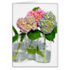 Klassische rustikale rosa, blau und grüne Hydrangeas in Mason-Gläsern