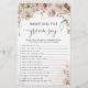 Das Brautparty Game strahlt eine charmante und raffinierte Aura aus, dank seines atemberaubenden Designs, das die traditionelle Eleganz nahtlos mit der modernen Ästhetik verbindet. Die sanften Farbtöne der Blumendarstellungen rufen ein Gefühl von Romantik und Weiblichkeit hervor, während die aufwändigen Details des Spielplans eine Touch der Verfeinerung schaffen. Es ist ein wirklich bemerkenswertes Stück, das einen bleibenden Eindruck auf alle verlasse, die es sehen. Matching-Elemente verfügbar. Vielen Dank!