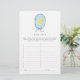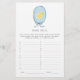 Dieses süße ABCs Baby Shower Spiel beinhaltet eine handgezeichnete gelbe Gummiente, die in einem weichen, blauen Band gerahmt ist und am Boden einen Bogen hat.