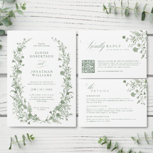 Halten Sie Ihre Gäste mit diesem eleganten botanischen Hochzeitsprogramm-Fächer kühl und informiert. Mit weicher salbeigrüner Wildblumen-Foliage und einem anmutigen, vintage-inspirierten Layout ist dieses Fächer-Programm perfekt für warme Frühlings- oder Outdoor-Gartenzeremonien. Vollständig anpassbar und sowohl praktisch als auch stilvoll, passt es perfekt zu einer naturinspirierten Hochzeitspapeterie.