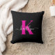 Elegantes Schwarz-Hot-Pink-Script-Monogramm Kissen