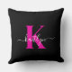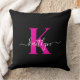 Elegantes Schwarz-Hot-Pink-Script-Monogramm Kissen