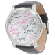Mit dieser stilvollen Uhr können Sie sich mit einem romantischen Schwarz-Rosa-Muster, das sich durch die zahlreichen Wiederholungen von "Liebe" und "Sweet" auszeichnet, zauberhaft schmücken. Diese Uhr ist perfekt für den Alltag oder als herzliches Geschenk zum Valentinstag oder Jahrestag geeignet und verbindet moderne Eleganz mit einer Touch von Verspieltheit, die sie sowohl funktional als auch modern macht.